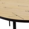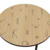 Arty sivupöytä 70 Letter  Pöytätaso tammiviilutettua kalustelevyä (PLP19). Musta koristeprinttaus (kirjain-kuvio). Tumma tammiviilutettu reunalista. Puuosissa kirkas lakka. Mattamustat metallijalat (halk. 2.5 cm ja kork. 38 cm). Pöydän halkaisija: 70 cm ja korkeus 40 cm.