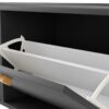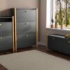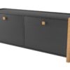 Hannover Shoe Bench Penkissä skandinaavinen muotoilu. Näyttävä tumman harmaan rungon ja koivumateriaalin yhdistelmä. 2-ovinen runko tumman harmaata melamiinia, kulmapalat ja vetimet massiivikoivua. Kenkähyllyjen mekanismit valkoista muovia. Tilaa noin 10 kenkäparille. Penkin leveys 125 cm, syvyys 32 cm ja korkeus 48 cm.