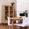 Kensal Vitrine Klassinen ja arvokkaan oloinen kaappi. Tämä näyttävä vitriinikaappi (lasiovissa karkaistu lasi) soveltuu hyvin olohuoneen, kirjaston tai ruokailutilan säilytyskalusteeksi. Tammiviilutettu runko, lasiovet sekä tammiset jalat ja ovien vetimet muodostavat näyttävän kokonaisuuden. Kaapissa paljon säilytystilaa vaikka keramiikalle ja kirjoille.