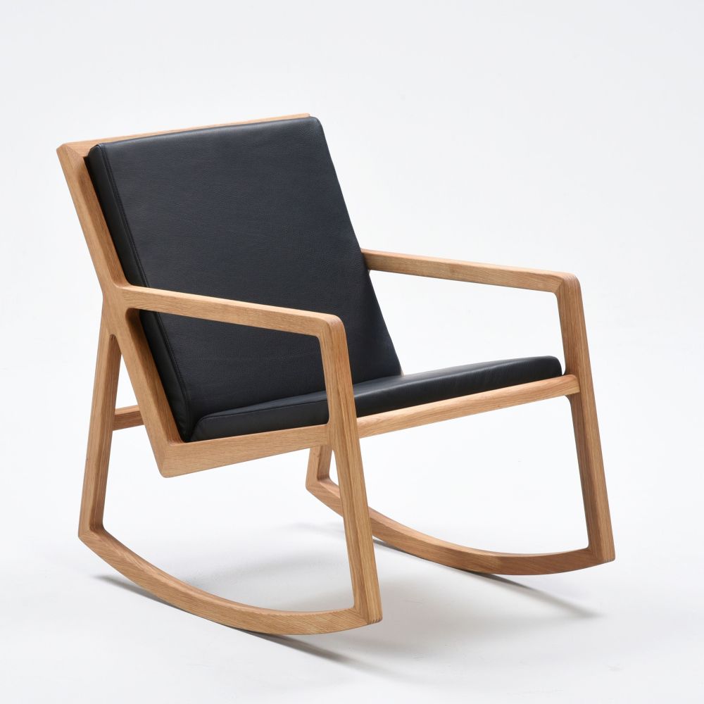 Lux keinutuoli on kaunis ja moderni massiivitammesta valmistettu keinutuoli. Runko öljyttyä tammea. Vetoketjulla avattava istuintyynysarja on pehmustettu ja verhoiltu mustalla nahalla.
