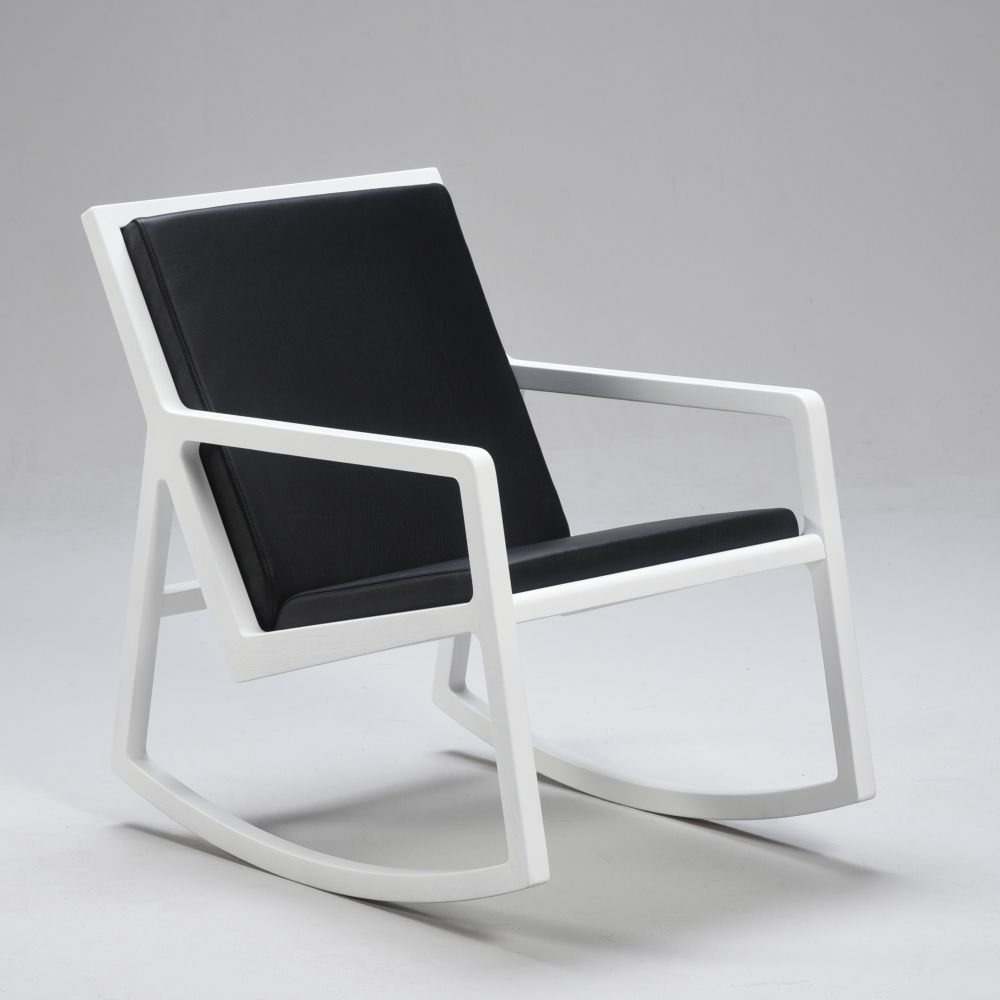Lux keinutuoli on kaunis ja moderni massiivitammesta valmistettu keinutuoli. Runko valkoiseksi maalattua tammea. Vetoketjulla avattava istuintyynysarja on pehmustettu ja verhoiltu mustalla nahalla.
