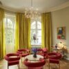 Ring -nojatuoli, runko öljyttyä pähkinäpuuta, istuin pehmustettu ja verhoiltu Pierre Frey:n Louison -kankaalla (alpakan -villaseos). Kankaan valmistaja: Pierre Frey. Tuolin leveys 85 cm, syvyys 71 cm ja korkeus 70 cm. Istuinkorkeus: 40 cm. Paino: 18 kg.