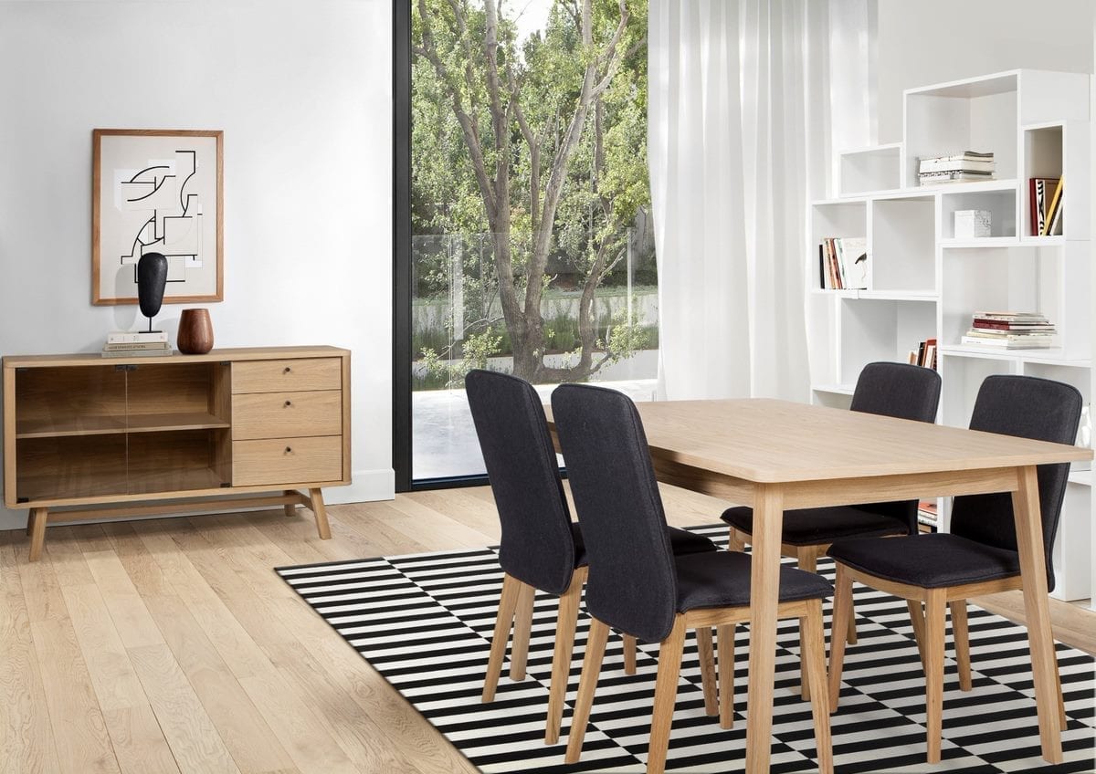 Skagen Dining Table Klassisen tyylikäs ruokapöytä 4-6 hengelle. Tämä tammiviilutettu pöytä soveltuu hyvin keittiöön ja ruokailutilaan. Sivusarjat tammiviilutettua vahvaa vaneria. Jalat massiivitammea.