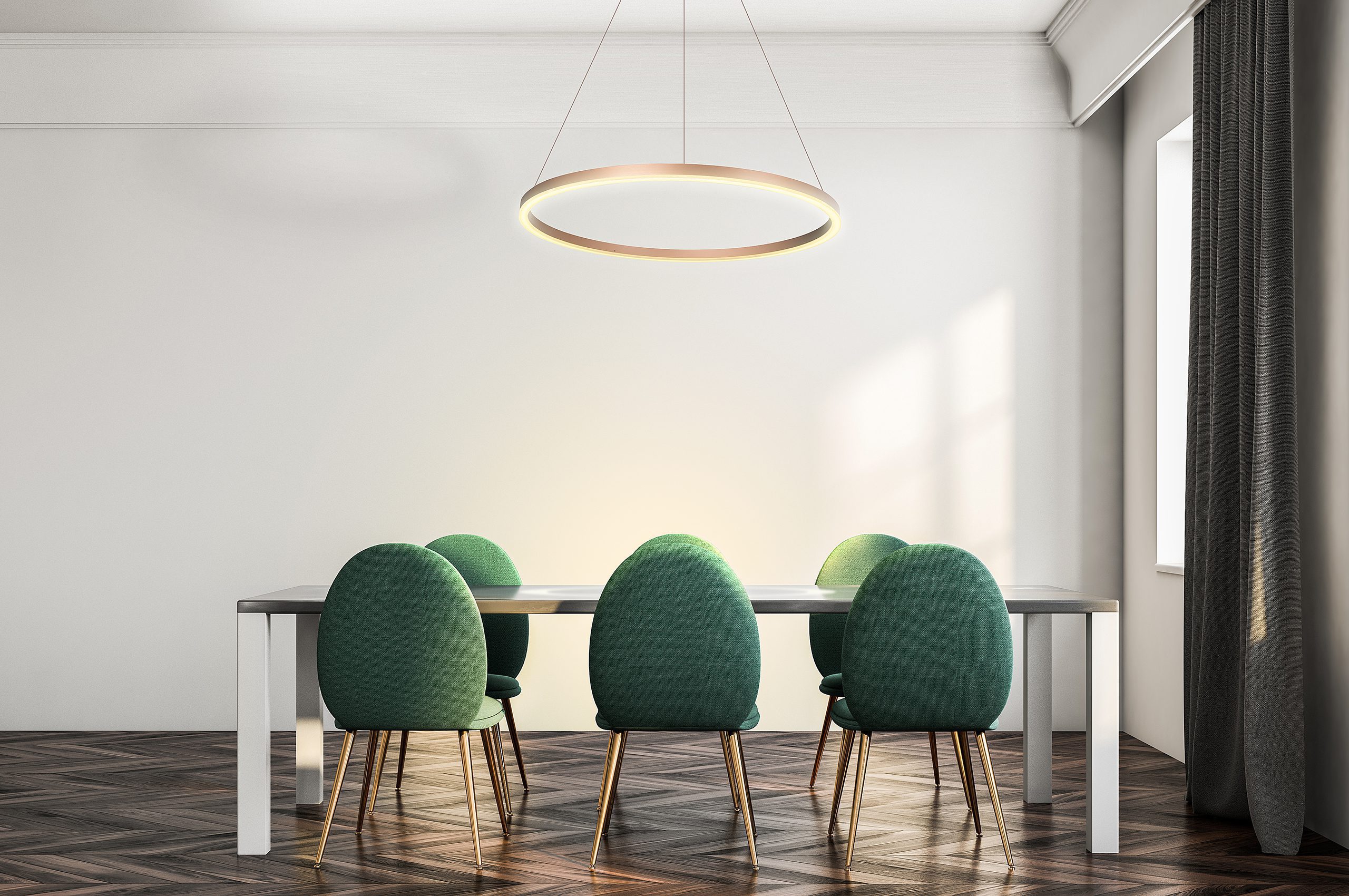 Renkaiden korkeus ja kallistus voidaan säätää erikseen halutunlaiseksi ja ripustaa korkeaankin kattoon.